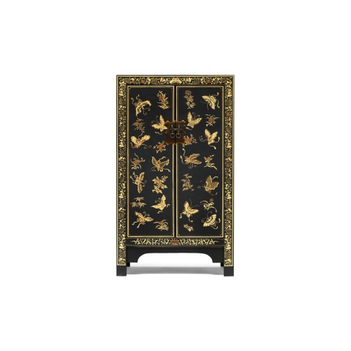 - An elegant Chinese cabinet in black with a classic Oriental design in gold leaf