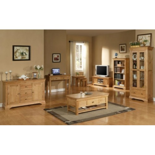 The Normandy Oak range is an elegant French styled collection crafted from carefully selected solid oak and oak veneers.With smooth curves and an elegant style with sophisticated metal knob handles, this collection is crafted to exceptional techniques with attractive features such as dovetailed drawers and plinth detailing.With practical features, such as removable shelf pins, pieces in this collection would be versatile for a variety of different interior settings. The wonderful Normandy Oak range is features a wide spectrum of living room pieces, including coffee table, nest of tables, console table, TV units and a selection of bookcases.
