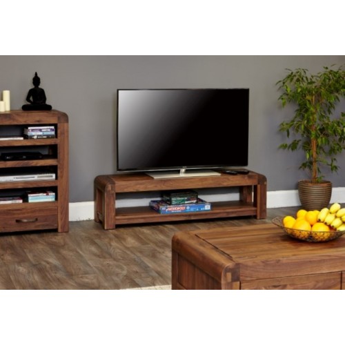 Superb solid walnut widescreen television cabinet Constructed using solid walnut Walnut is a very high quality timber with a dense grain, this makes it the perfect choice for building stunning and unique furniture This television unit has a fixed shelf to give extra structural rigidity The overall dimensions of the cabinet are H35 x W130 x D35 cm The lower shelf is open and spacious to carry the large variety of ancillary units which are now standard in most homes Designed to take any Plasma/LCD/LED television upto 72" in size Crafted from the highest grade selected solid walnut Environmental...