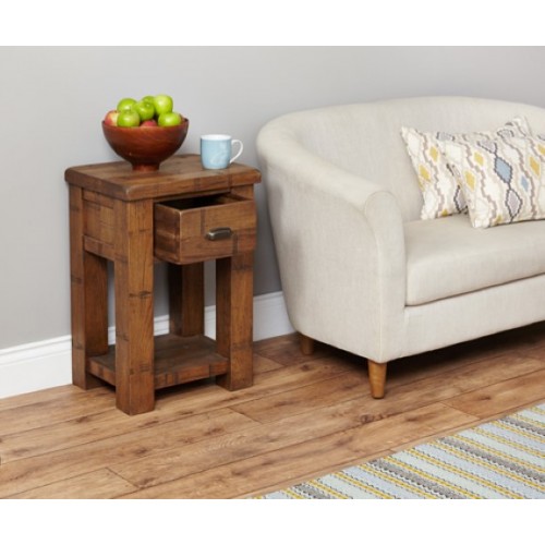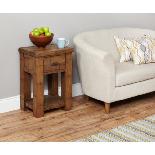 From our eye-catching Heyford rough sawn oak range Carefully crafted using rough sawn oak and hardwood panels Exceptionally built throughout The overall dimensions of the lamp table are H65 x W45x D35 cm The internal dimension of the drawer is H13 x W22.5 x D27 The height between the bottom shelf and the drawer is 33cm The drawer is constructed using dovetail joints Panelled sides add design detail Tongue and groove hardwood back Resilient satin lacquer finish is hardwearing yet emphasises the beautiful oak grain This is a solidly constructed piece of furniture and no assembly is required Hea...