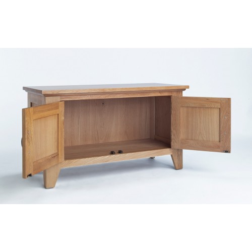 The Sherwood Oak range is made of a high quality grade of oak and exhibits all the hallmarks of quality furniture.These include wood-panelled drawer bases and cabinet backs and the use of dovetailed joints in constructing drawers.Sherwood Oak furniture features a decorative curved beading to the underside of cabinet tops and chamfered, rather than square finished leg ends to all floor-standing cabinets.Sherwood Oak furniture has a light oak appearance and is finished in a hard-wearing, satin lacquer finish. Carefully selected oak veneers are used in the side panels of certain items with the Sherwood Oak range.