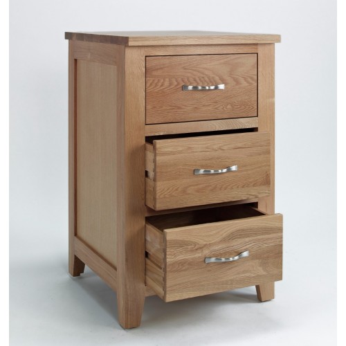 The Sherwood Oak range is made of a high quality grade of oak and exhibits all the hallmarks of quality furniture.These include wood-panelled drawer bases and cabinet backs and the use of dovetailed joints in constructing drawers.Sherwood Oak furniture features a decorative curved beading to the underside of cabinet tops and chamfered, rather than square finished leg ends to all floor-standing cabinets.Sherwood Oak furniture has a light oak appearance and is finished in a hard-wearing, satin lacquer finish. Carefully selected oak veneers are used in the side panels of certain items with the Sherwood Oak range.