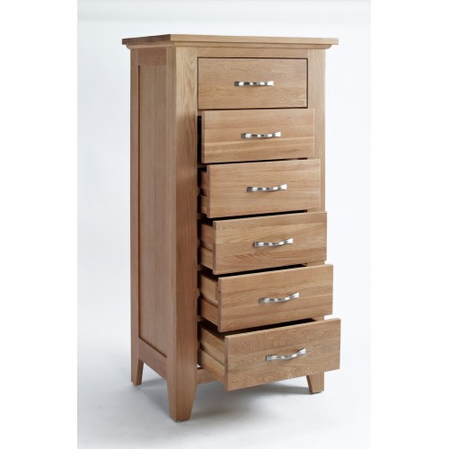 The Sherwood Oak range is made of a high quality grade of oak and exhibits all the hallmarks of quality furniture.These include wood-panelled drawer bases and cabinet backs and the use of dovetailed joints in constructing drawers.Sherwood Oak furniture features a decorative curved beading to the underside of cabinet tops and chamfered, rather than square finished leg ends to all floor-standing cabinets.Sherwood Oak furniture has a light oak appearance and is finished in a hard-wearing, satin lacquer finish. Carefully selected oak veneers are used in the side panels of certain items with the Sherwood Oak range.