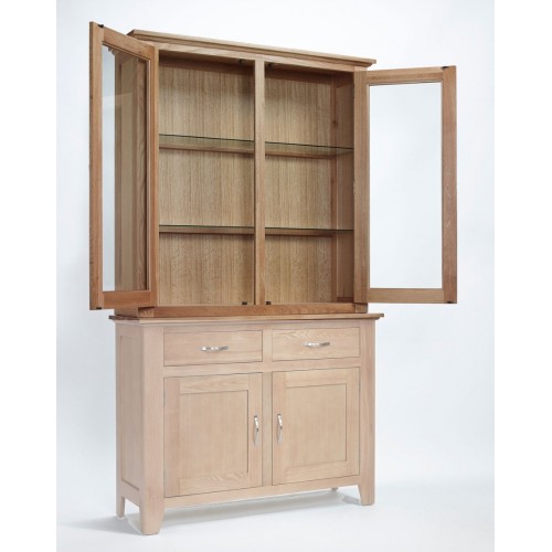 The Sherwood Oak range is made of a high quality grade of oak and exhibits all the hallmarks of quality furniture.These include wood-panelled drawer bases and cabinet backs and the use of dovetailed joints in constructing drawers.Sherwood Oak furniture features a decorative curved beading to the underside of cabinet tops and chamfered, rather than square finished leg ends to all floor-standing cabinets.Sherwood Oak furniture has a light oak appearance and is finished in a hard-wearing, satin lacquer finish. Carefully selected oak veneers are used in the side panels of certain items with the Sherwood Oak range.