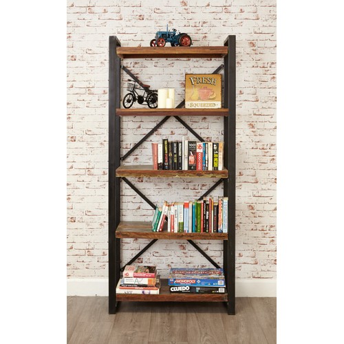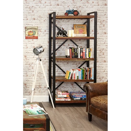 Unique contemporary large open bookcase The exclusive Urban Chic range is made using reclaimed wood salvaged from old buildings in places such as Gujarat, Maharashtra and Rajasthan Southern India Some of the wood used can be between 50 and 150 years old and is assembled by skilled craftsmen who create this colourful and interesting furniture As each piece in the range is hand finished using a unique blend of reclaimed timbers, every item is truly individual A beautifully made steel outer frame gives a fantastic urban edge and offers great structural rigidity The overall dimensions of the boo...